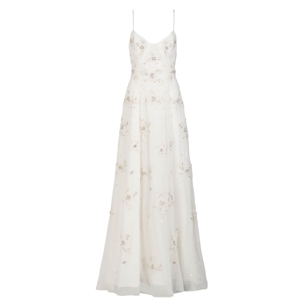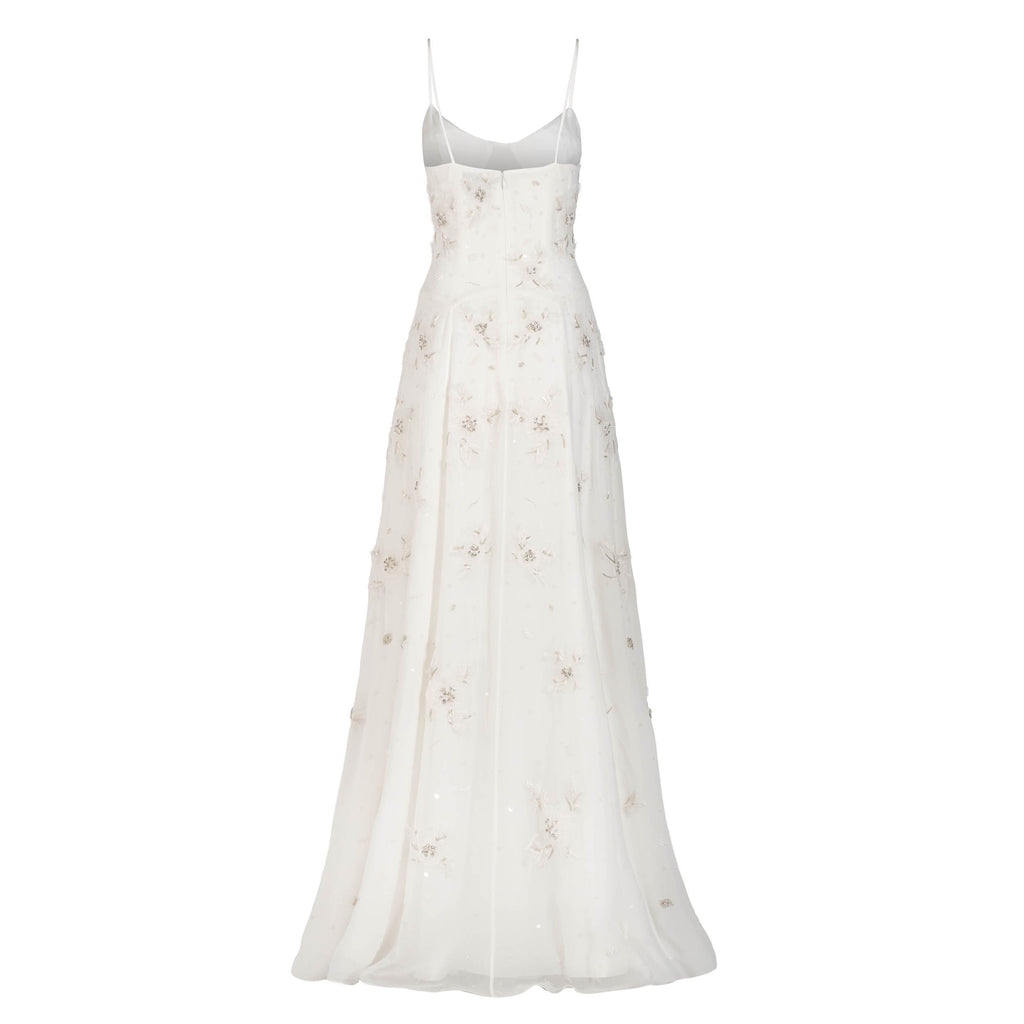 A graduate of the Savannah College of Design, award-winning Alexandra Pijut’s namesake line arrives from her studio in New York, offering luxe ready-to-wear pieces that distinguish themselves between femininity and practicality. The Liv Gown in Ivory with Wildflower Clusters captivates with a statuesque, drop waist silhouette adorned in delicate fabric flowers, glistening crystals, and intricate beadwork. Designed to pair effortlessly with the Anne Cape, it transitions gracefully between moments and moods. Features an invisible zipper for clean structure and fit.