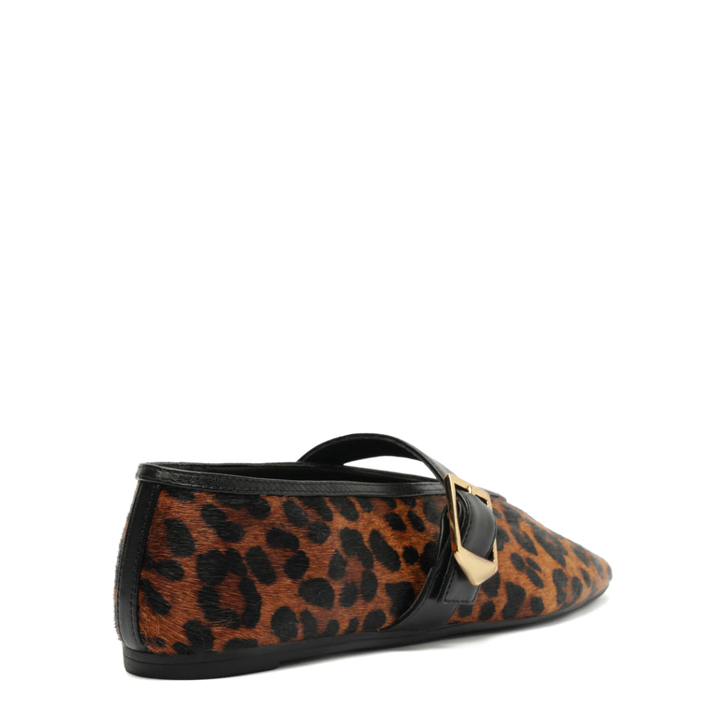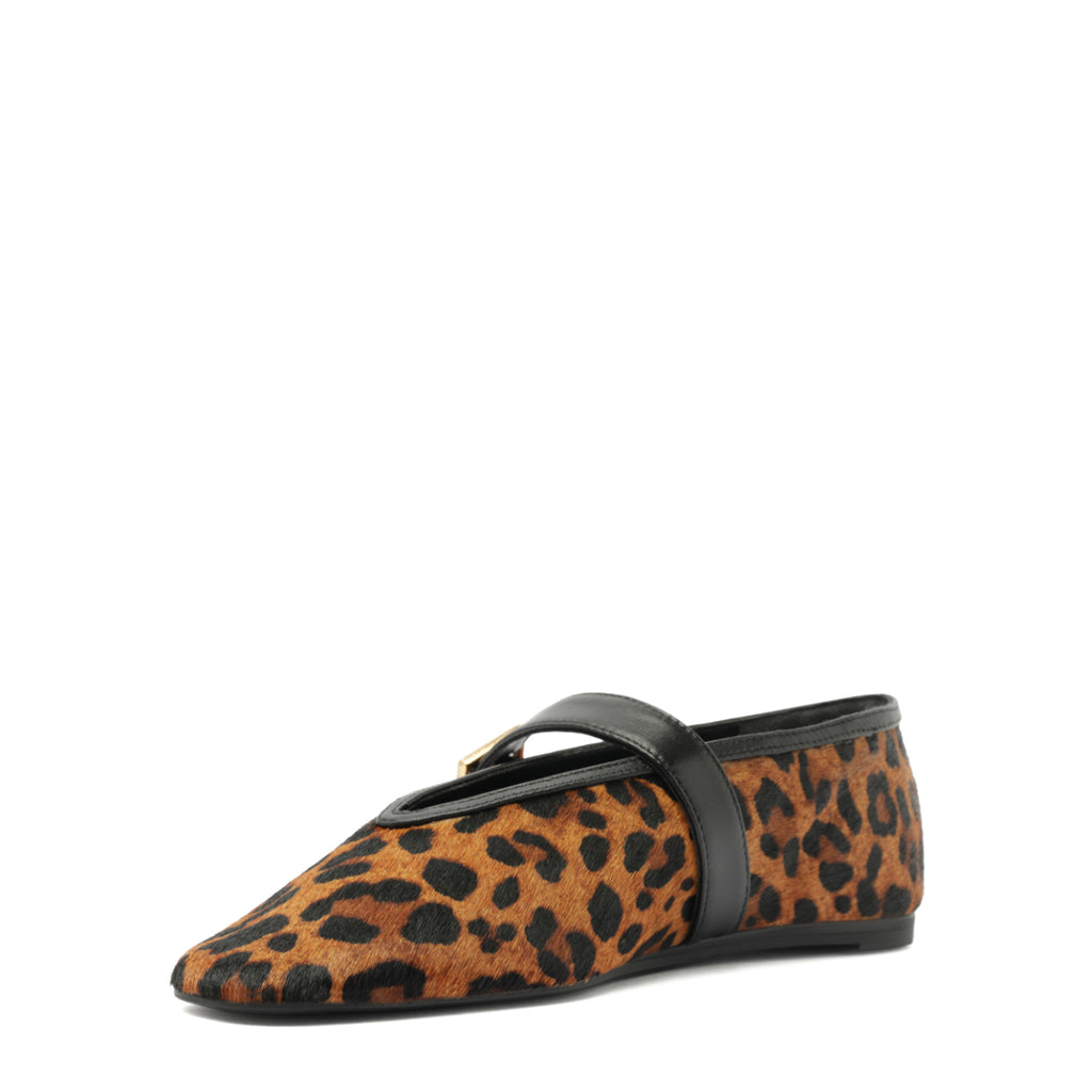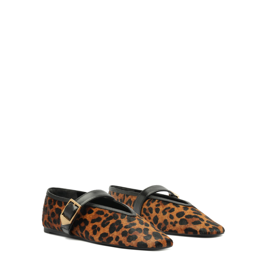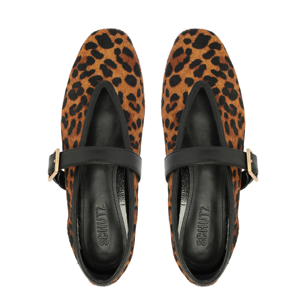 Hair calf upper. Man-made lining. Man-made sole. 0.2" heel height.