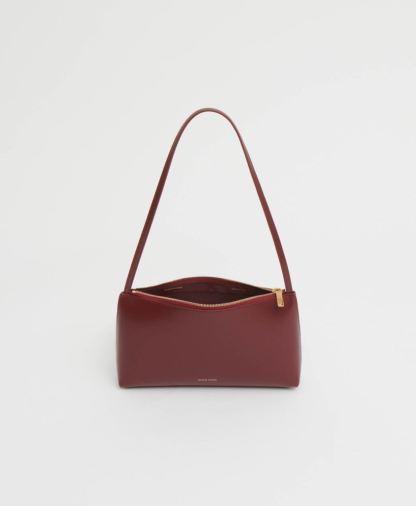 Founded in 2013, Mansur Gavriel redefines luxury through its distinctive approach to color and form. Born out of a passion for art and design, Rachel Mansur and Floriana Gavriel created two simple silhouettes—launching with just a bucket and tote. The brand’s designs, dreamt up in New York and crafted in Italy, continually challenge the notions of what expression can be. The Gaia Shoulder Bag in Claret is sleek and minimalist—an effortless underarm companion crafted from glossy Italian Spazzolato leather with a slender strap and zipper closure.