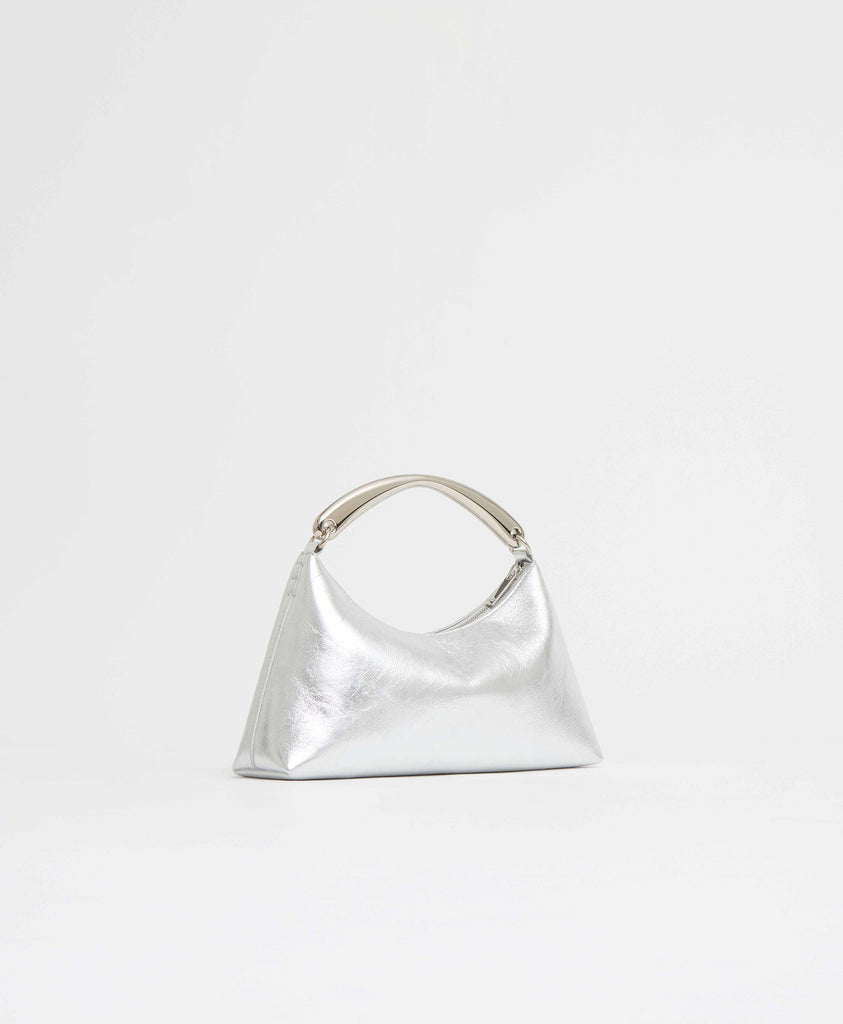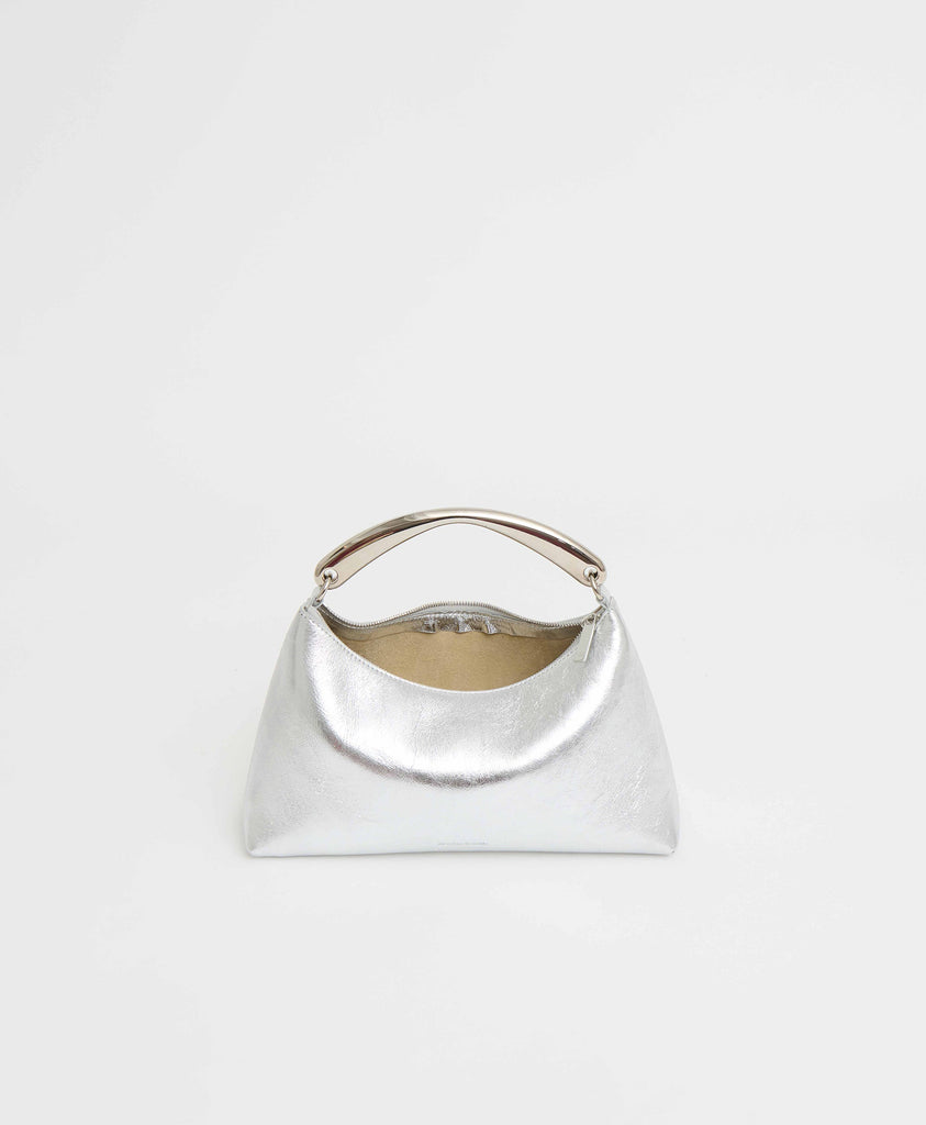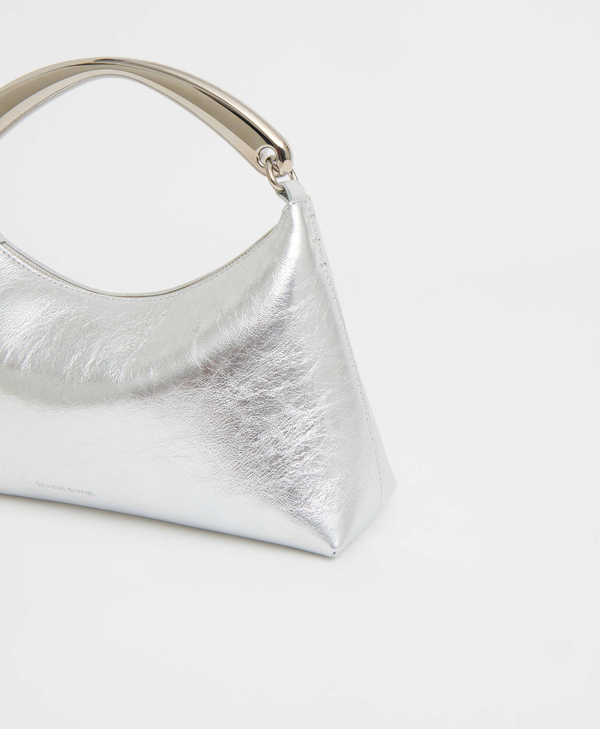 Founded in 2013, Mansur Gavriel redefines luxury through its distinctive approach to color and form. Born out of a passion for art and design, Rachel Mansur and Floriana Gavriel created two simple silhouettes—launching with just a bucket and tote. The brand’s designs, dreamt up in New York and crafted in Italy, continually challenge the notions of what expression can be. The Metal Handle Rhea in Silver pairs soft structure with sculptural charm, crafted in supple Italian lambskin leather with a distinctive top handle that brings an artful edge to its understated silhouette.