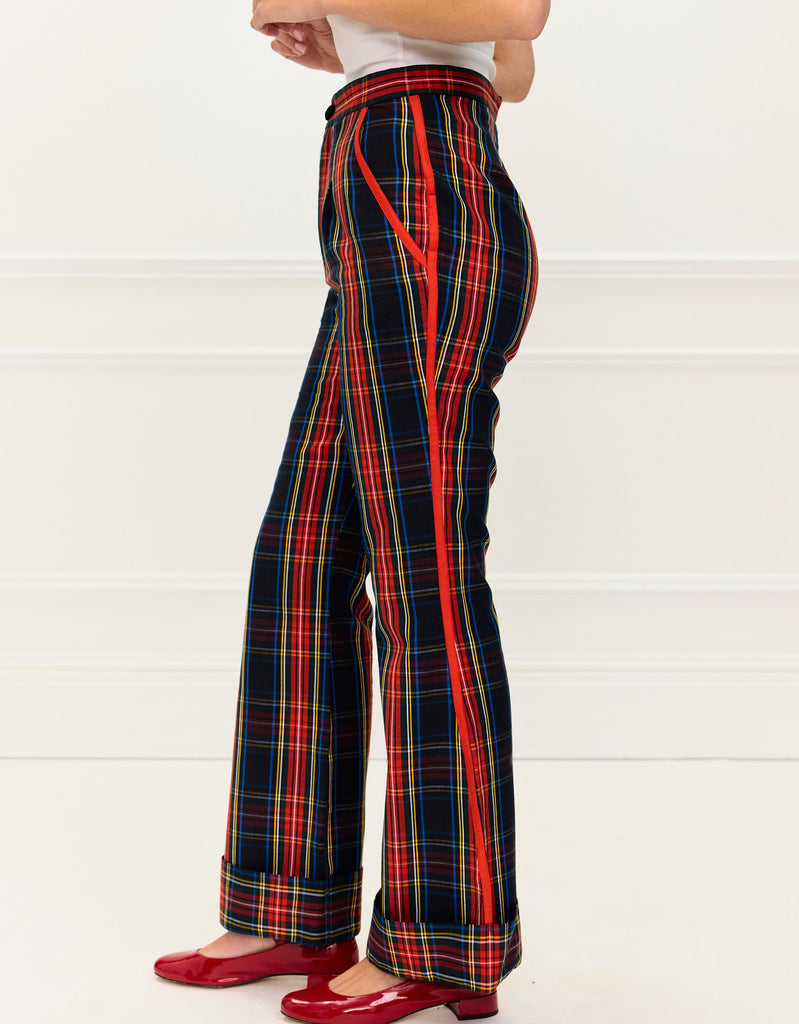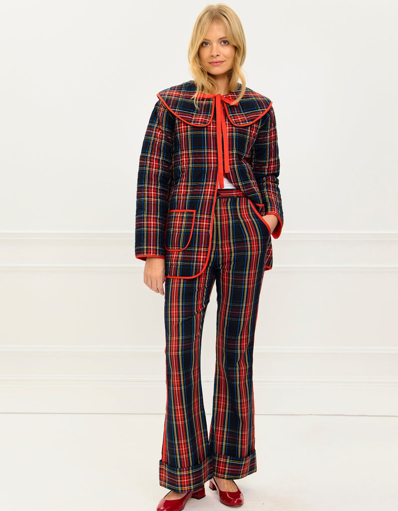 Color and creativity are the foundations of Pink City Prints, a brand inspired by founder Molly Russell’s life in Jaipur. In her inimitable dresses, you’ll find centuries of craft knowledge, expressed through unmatched quality and traditional techniques, like hand embroidery, block printing, and hand-looming. A bold twist on tailoring, the Midnight Tartan Romy Trousers are hand-loomed in rich shades of crimson, navy, and golden yellow. Designed with a flattering flare and finished with a thick rolled cuff that nods to retro styling, they strike the balance between playful and polished. Pair with the matching Simone Jacket for a coordinated look, or mix with bold prints and chunky boots for a fashion-forward winter statement.