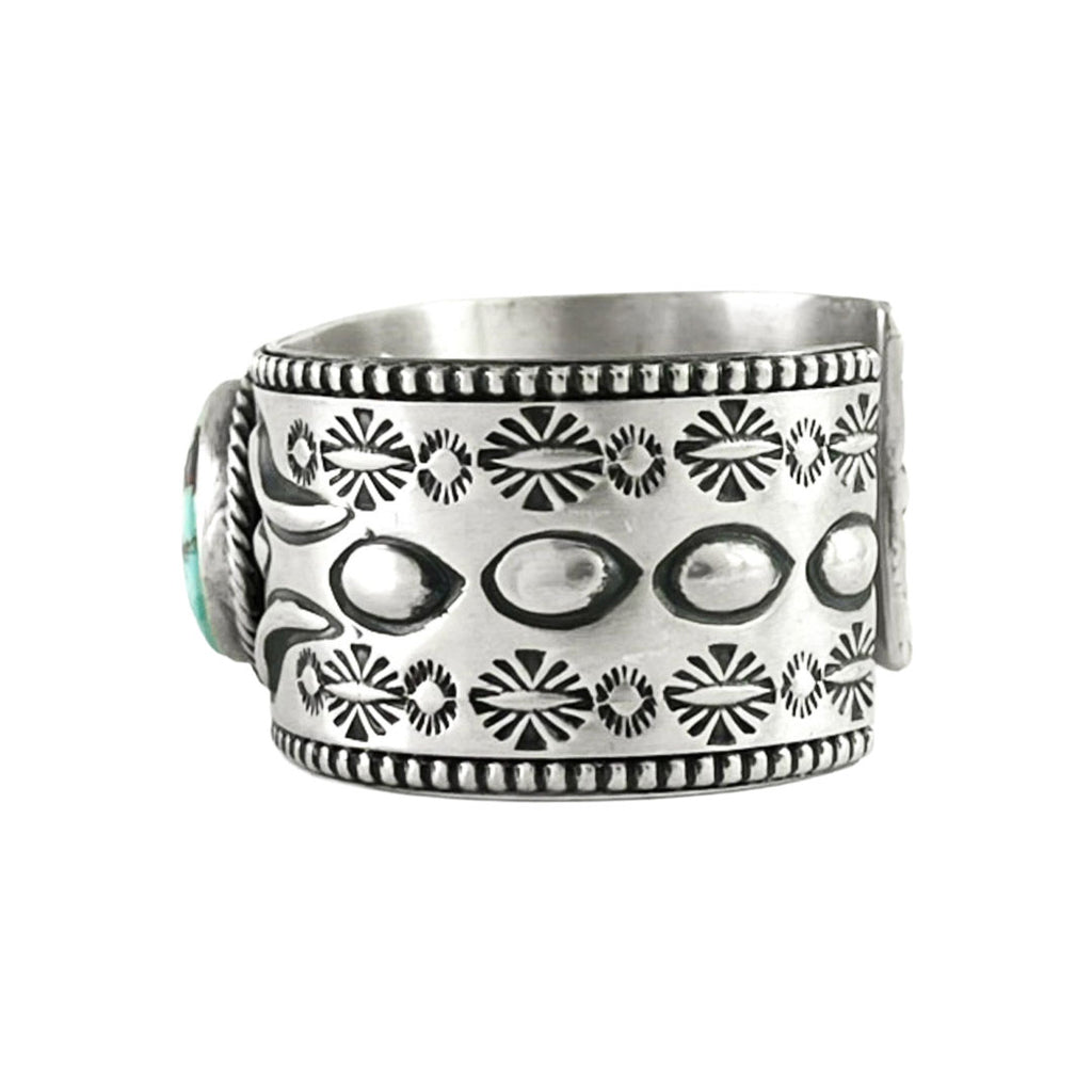 Sterling silver. American Royston turquoise. Signed by Jeff James Jr. Marked sterling. Handcrafted by Navajo artist Jeff James Jr.